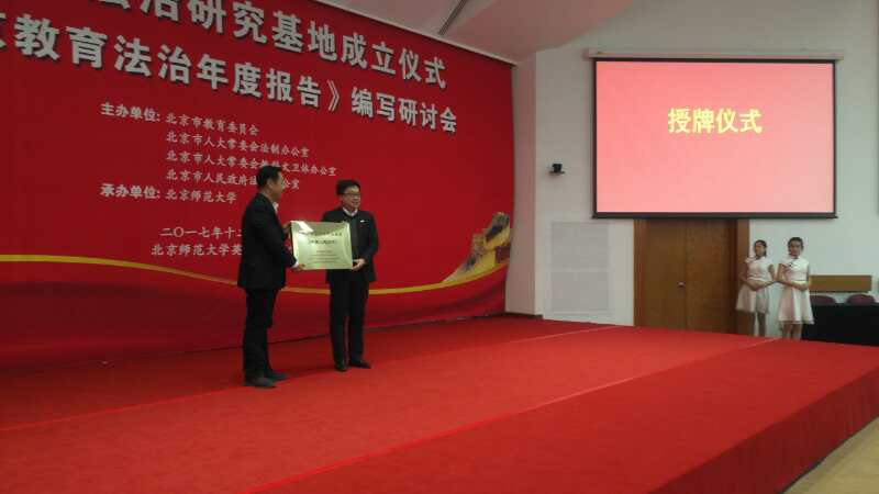 2017年12月18日,北京教育法治研究基地成立仪式在北京师范大学举行,我校校长助理郭洪林、副院长申素平、叶阳永老师以及硕士研究生左磊、姜颖等参加了基地成立仪式。