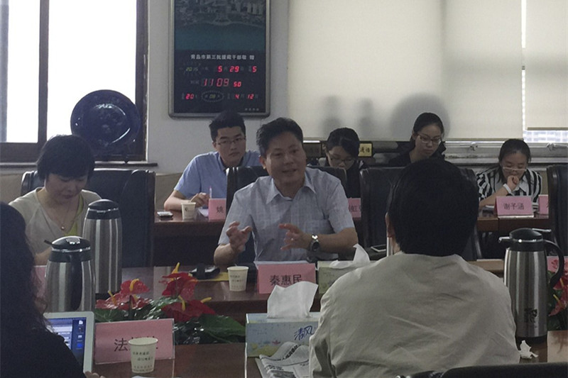 5月29日下午,调研团队与青岛市教育局各处室负责人座谈,了解市级教育行政处罚实施的现状。调研团队成员姚荣、刘虹豆、刘晓坤、谢予涵、汤洋还针对职业教育、民办教育、学前教育、校车安全、教师有偿补课等问题与相关处室负责人进行了交流。