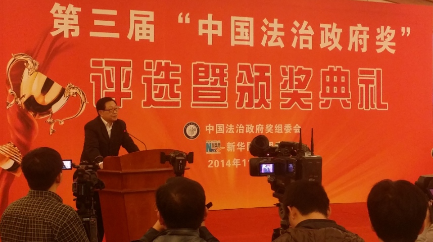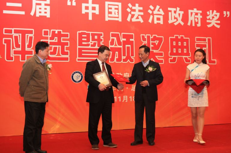 2014年11月18日,第三届“中国法治政府奖”终评和颁奖典礼在京举行。本届“中国法治政府奖”最终评选出10个“中国法治政府奖”和14个“中国法治政府奖提名奖”。十一届全国人大常委会副委员长华建敏等颁奖嘉宾为获奖单位颁发了奖牌和证书。