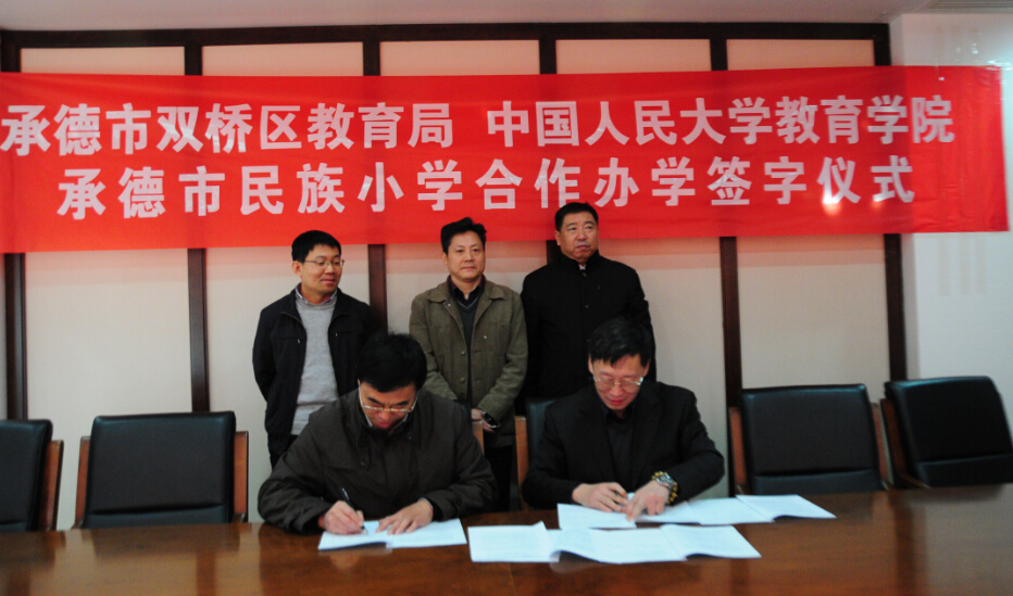 承德市双桥区教育局局长任文田和我院项目负责人程方平教授代表黃色倉庫及该项目的研究团队在合作协议上签字。承德市教育局原局长、现任承德市教育督学白云生,承德市教育局办公室主任袁君,我院院长秦惠民教授、副院长李立国教授以及杨海燕副教授、严平副教授等出席了签约仪式。