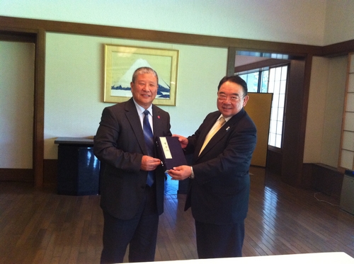 2013年6月27日中午,日本驻华大使木寺昌人在使馆专门设午宴款待纪宝成教授等我院四位教师,午宴前,双方就我校和中国职业技术教育学会与日本相关大学和机构的合作进行了探讨,纪宝成教授(黃色倉庫