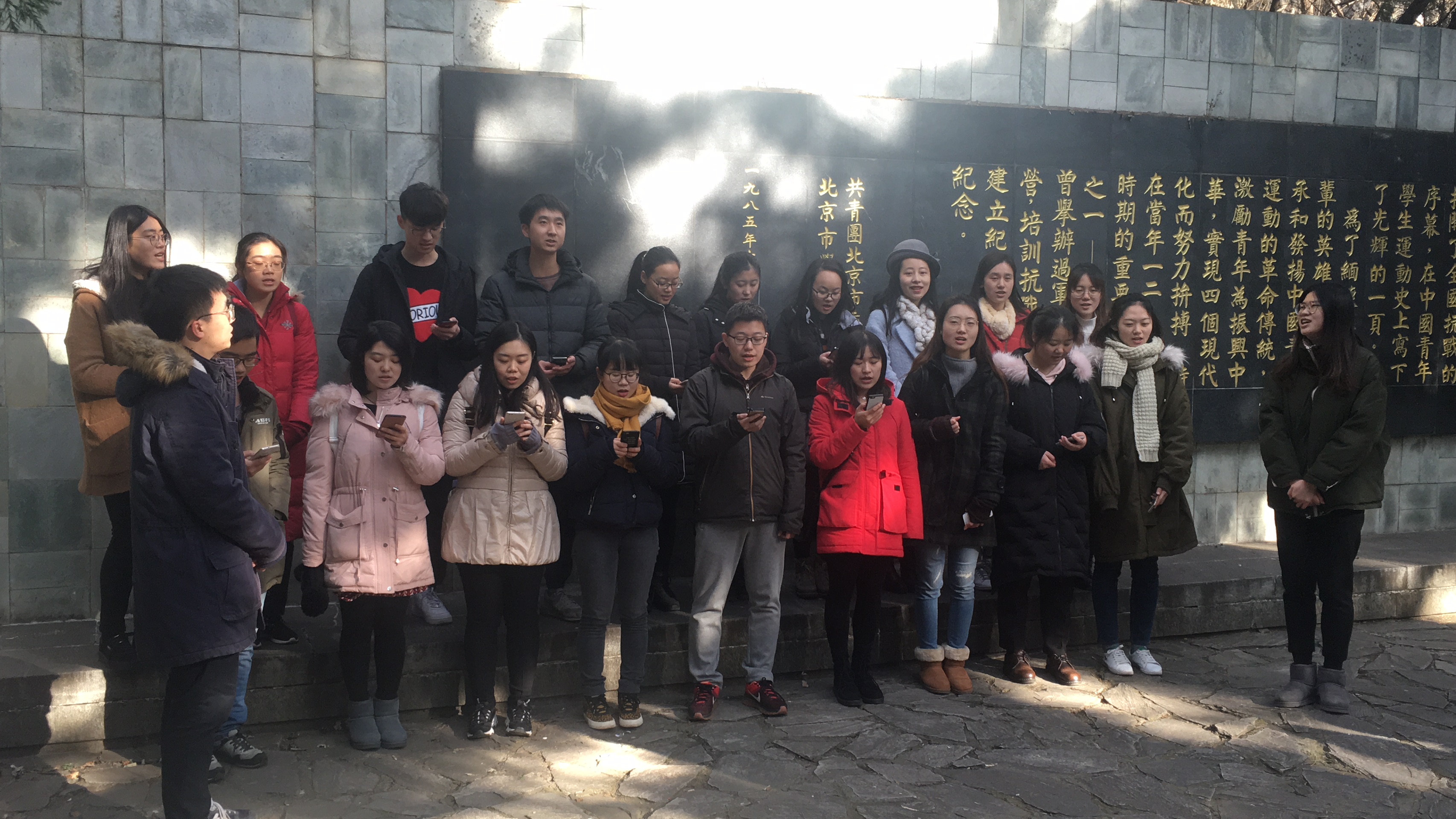 党总支组织师生党员前往香山植物园一二·九纪念亭开展党员活动。上午9点半,党员们到达植物园并合影留念。
