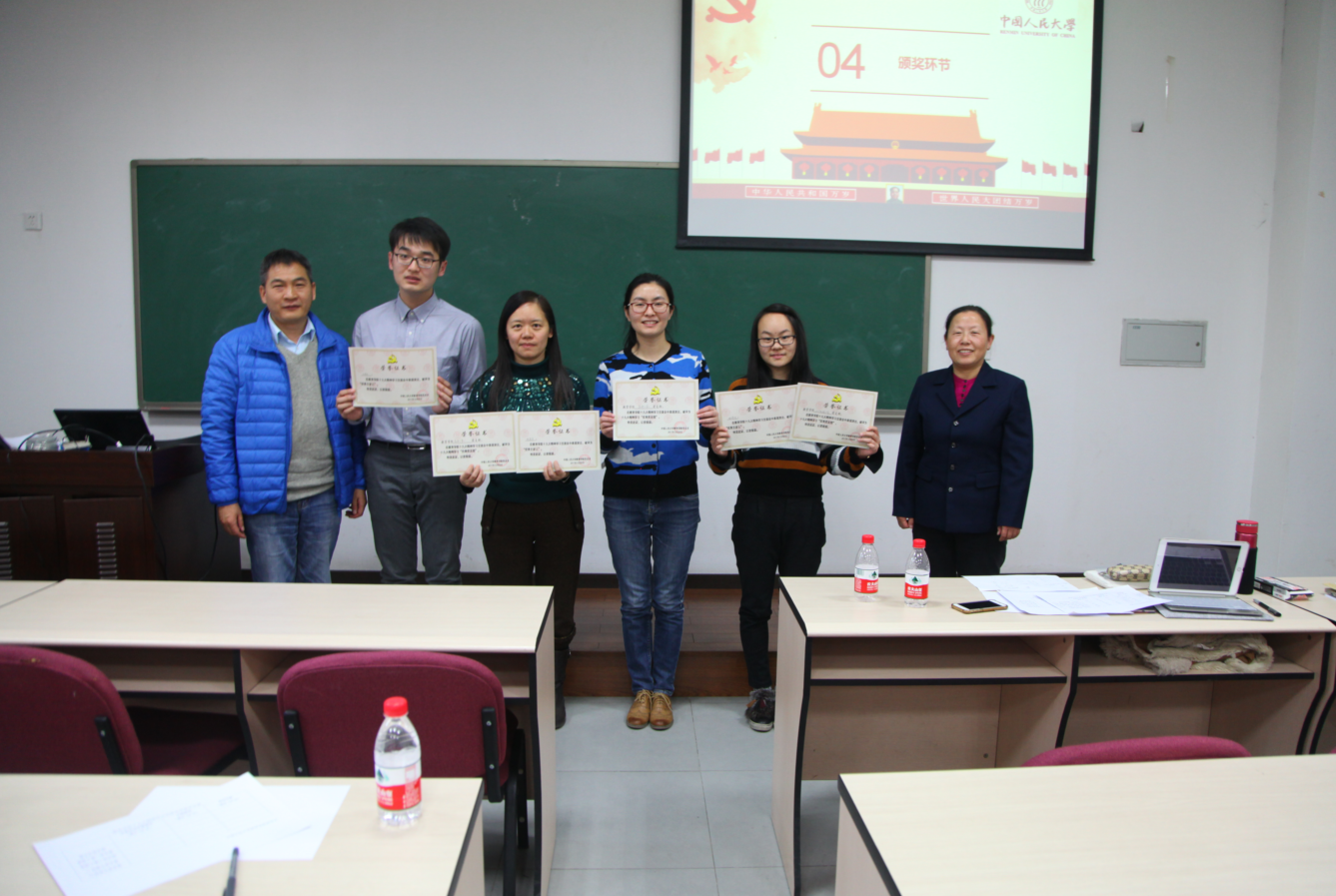 张茹老师认为各支部学习形式丰富,学习成果丰硕,希望今后各支部继续保持学习势头,并将十九大精神落实到工作、学习和生活当中。张老师还鼓励青年学子抓住时代契机,学好专业知识,锻炼过硬本领,不忘初心,牢记使命,努力为党和人民作出贡献。