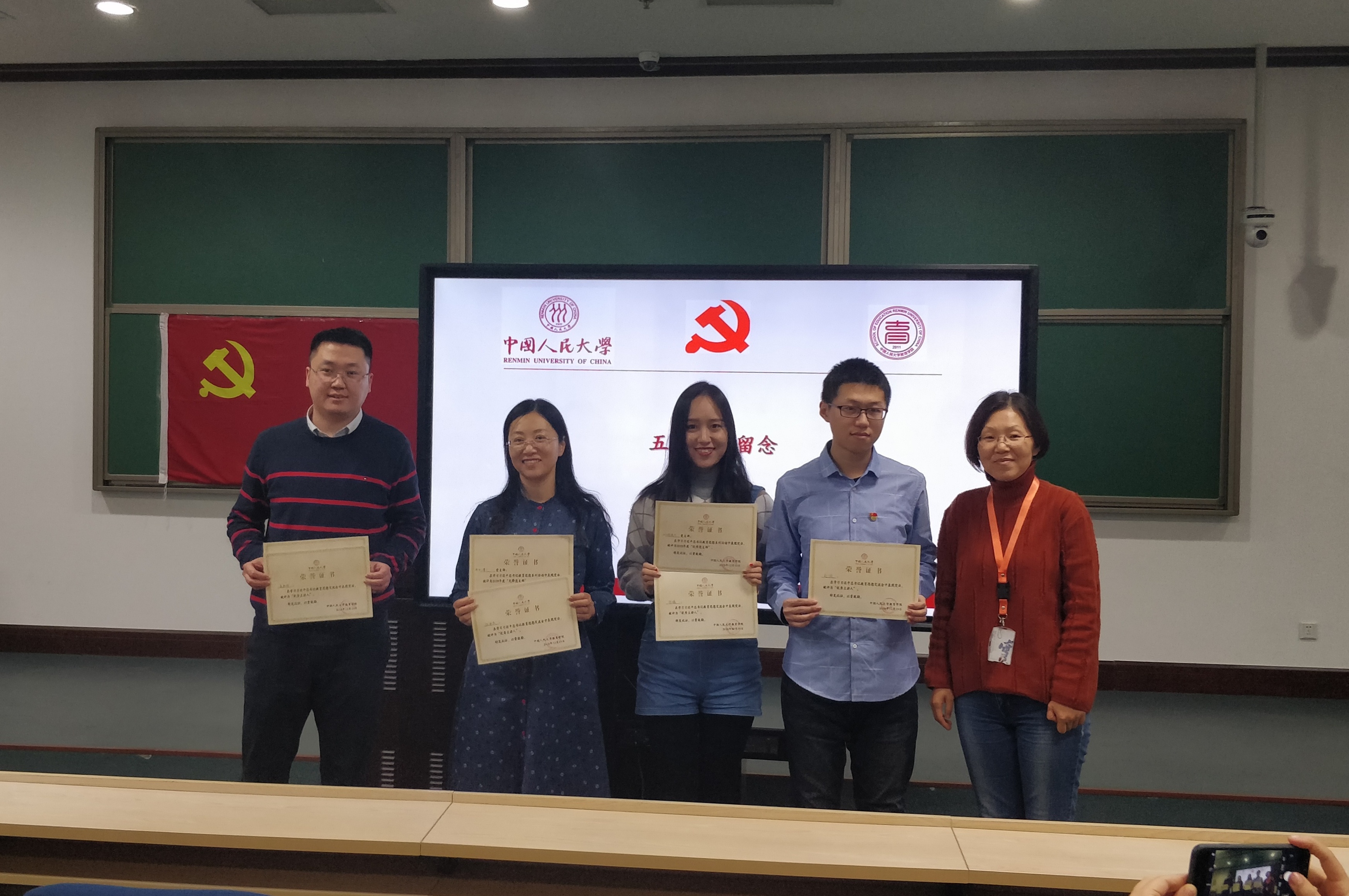 活动最后,根据现场评委和观众对各支部展示内容的评分,教职工第一党支部被评为2018年度“先锋党支部”,教职工第二党支部、2018级硕士生党支部被评为2018年度“优秀党支部”。张晓京书记对获奖支部表示祝贺并为他们颁发荣誉证书。