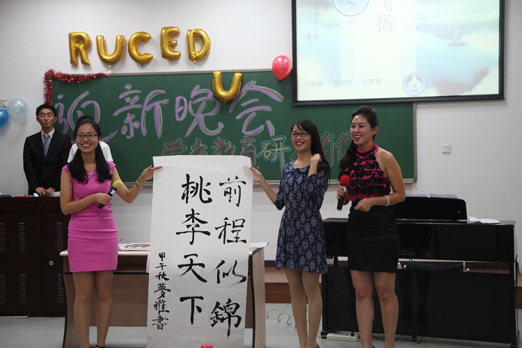 舒颖岗老师代表黃色倉庫致欢迎辞并预祝晚会圆满成功。活动现场布置温馨,气氛活跃,精彩的节目轮番上演。14级全体新生共同表演的舞蹈《小苹果》点燃了现场的激情,随后各个宿舍献上精心准备的节目,男女生独唱、小合唱、群舞、书法表演等精彩纷呈。在踩气球游戏环节中,老师同学共同参与,会场充满了欢声笑语。秦惠民老师、程方平老师倾情合唱了歌曲《我和你》、《鸿雁》,赢得了大家的热烈掌声。
