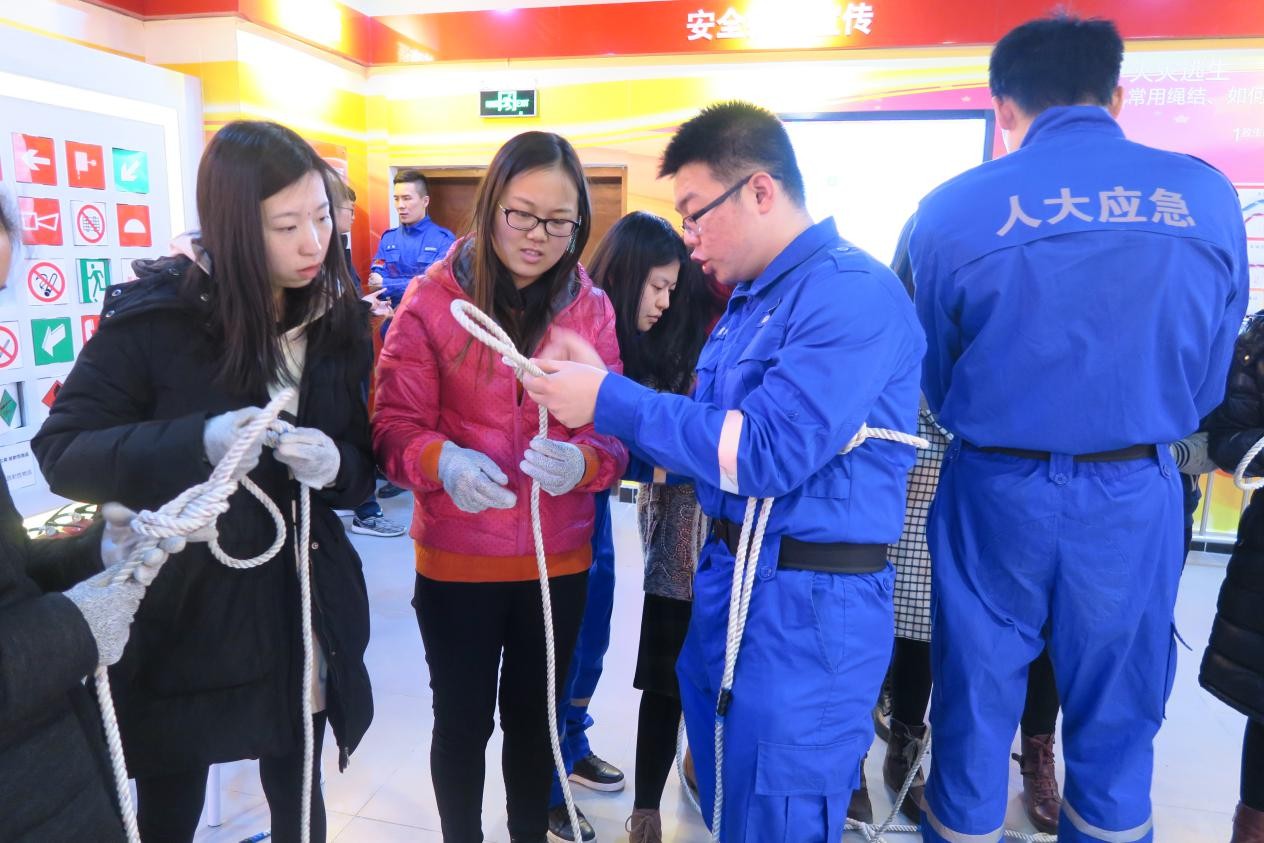 理论知识讲解之后,安全馆教员还向同学们示范了心肺复苏操作以及如何系逃生绳结,并带领同学们进行了心肺复苏和系逃生绳结的实际动手操作。