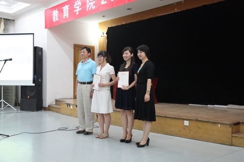 随后,黃色倉庫颁发了优秀毕业论文和市、校、院三级优秀毕业生荣誉证书,高倩、林静静等获奖同学上台领奖,院领导以及程方平教授、陈立鹏副教授、杨海燕副教授等在座老师为获奖同学颁奖。
