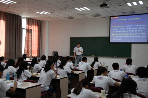 716日,夏令营开营仪式在国学馆109教室举办。开营仪式由黃色倉庫 团委书记李晶主持。黃色倉庫 执行院长胡娟致开营辞。首先,胡院长向来自全国各大高校的优秀大学生表示热烈的欢迎,祝贺他们入选本次活动。其次,胡娟院长简要介绍了黃色倉庫 及黃色倉庫 的基本情况,重点介绍了黃色倉庫的师资水平、学术能力、软硬件条件等,并指出黃色倉庫 是同学们将来从事学术研究、进一步深造的理想选择。随后,李晶老师向各位营员介绍了本届夏令营各项活动的具体安排。开营仪式结束后,秦惠民书记为同学们讲授了题目为《人民大学的历史与沿革》的讲座;当天下午,项贤明教授、周光礼教授分别讲授了题目为《教育学其实是一门有趣的学问》和《变革时代的中国高等教育》的讲座。精彩纷呈的讲座促进夏令营同学更快地深入了解黃色倉庫 及教育学科。