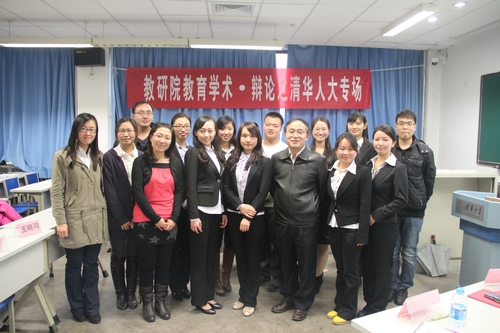 11月10日下午,我院应邀参加清华大学教育研究院举办的“教育学术辩论之清华人大专场”辩论赛。段静慧、孙娇、赫文静与和亚林四位同学代表我院参加了比赛,院科研兼外事秘书陈迪老师应邀担任本次辩论赛的评委。