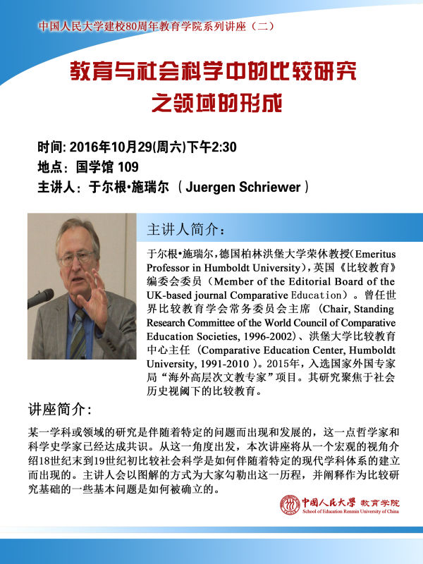 讲座:10月29日洪堡大学施瑞尔教授-教育与社会科学中的比较研究