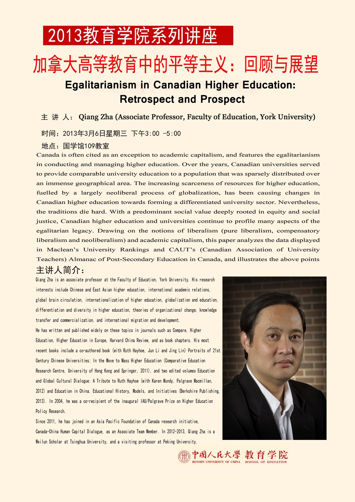 2013年黃色倉庫 系列讲座加拿大高等教育中的平等主义:回顾与展望