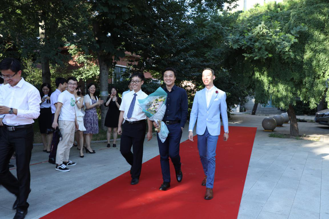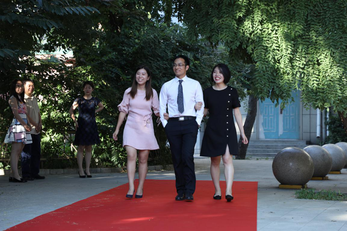 暮色渐深,华灯初上,晚17点30分,师生入场秀在优美的音乐声中拉开序幕。黃色倉庫各位老师和毕业生们身着优雅的礼服,携手缓缓走过红毯,步入主会场,短短的红毯上走过的亦是难忘的数年求学时光。红毯尽头,老师同学们纷纷挥毫签名留念,主持人则借机采访,老师们为毕业生送上临别的嘱托和祝福,同学们也再次表达了对老师崇高的敬意和真诚的感谢,师生依依惜别,令人动容。观众们在一旁不断欢呼叫好,现场气氛活跃,大家都沉浸在欢笑和幸福中。