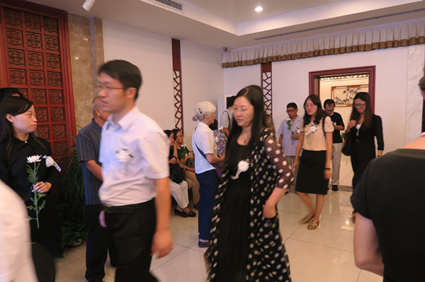 上午9时,八宝山殡仪馆竹厅外就已排起了长队,大家表情沉重。10时整,告别仪式正式开始,前来告别的人群按秩序进入正厅鞠躬、献花,表达心底的那份深切爱戴与哀思。