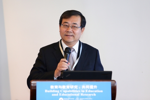 随后,副校长刘向兵致欢迎辞。他指出,教育是全人类、全社会共同参与的公共事业,是人类进步的阶梯,是社会改造的动力,是人与自然、与社会和谐共进的基石。教育的研究是为更好地推进教育这一最美好的公共事业而结成的学习、学术和学者的共同体。因此,教育思想的发展、教育制度的改革、教育实践的推进、教育研究的繁荣,都离不开你、我、大家所构成的这一教育的共同体,离不开大家的共同参与、共同建构、共同提升。为此,他期望学者们能够在未来三天的沟通、交流、学习中如切如磋、如琢如磨,共同进步、共同发展。