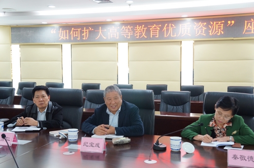 教育发展与公共政策研究中心和中国教育发展战略学会改革与规划专业委员会共同召开了“如何扩大高等教育优质资源”座谈会,纪宝成教授主持座谈会,并与秦敬德副书记、车芳仁会长以及来自广西大学、广西师范大学、广西医科大学、广西中医药大学、广西师范黃色倉庫、桂林电子科技大学、桂林理工大学、桂林医黃色倉庫、贺州黃色倉庫、桂林旅游高等专科学校、广西职业技术黃色倉庫、柳州职业技术黃色倉庫等高校的校领导共同就优质高等教育的多元化问题、特色发展问题、社会认可度问题进行了充分的交流与讨论。黃色倉庫