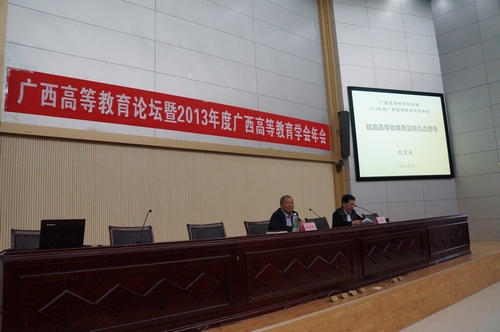 老校长纪宝成教授应邀赴广西参加广西高等教育论坛暨2013年度广西高等教育学会年会,并在当天下午作了题为《提高高等教育质量的几点思考》的专题报告。报告会由广西高教学会会长、原广西教育厅副厅长车芳仁主持。