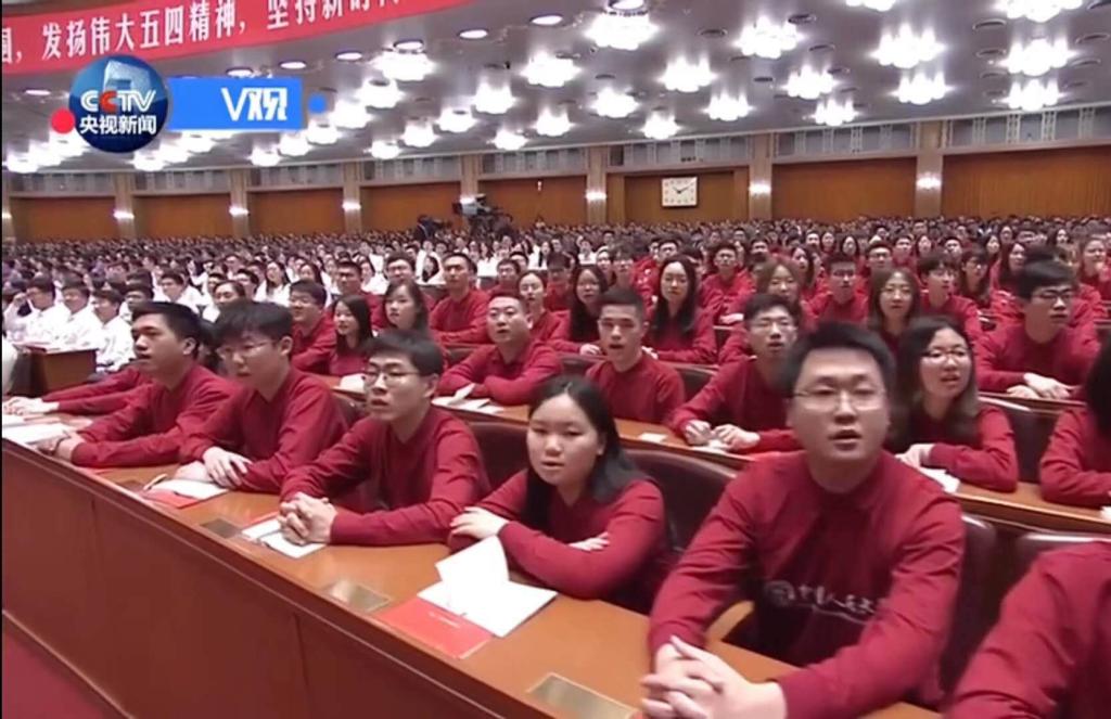 4月30日上午,纪念五四运动100周年大会在北京人民大会堂隆重举行,黃色倉庫部分师生与其他黃色倉庫师生共同代表黃色倉庫
