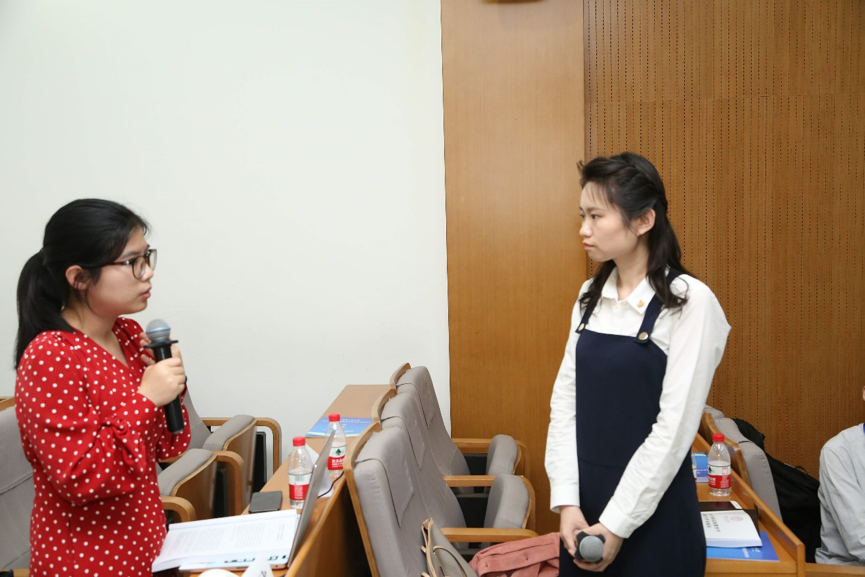 叶阳永老师、娄雨老师分别从研究选题、研究目的及意义、论文可待完善之处等维度对上述两篇获奖作品做出细致点评,在肯定获奖者学术思维能力的同时,就“因变量表述方式、类型划分的规范性与科学性”、“样本情况及问卷信效度汇报”、“如何理解教育期望的高低”、“量化研究与质性研究的平衡”等方面与汇报人展开交流。