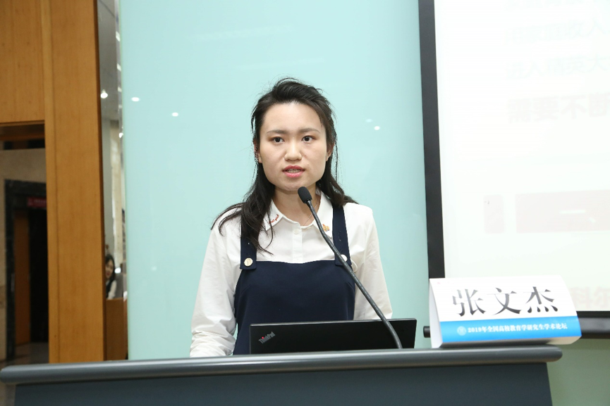 下午,5位获奖者代表在大会发言,向与会者汇报论文。一等奖获奖者北京大学张文杰同学、华东师范大学于金申同学分别以《家庭内社会资本对子女精英特质的影响——基于北京大学2016-18级新生调查的量化分析》、《深度贫困地区的贫困家庭父母教育期望为何较低?》为题做汇报。