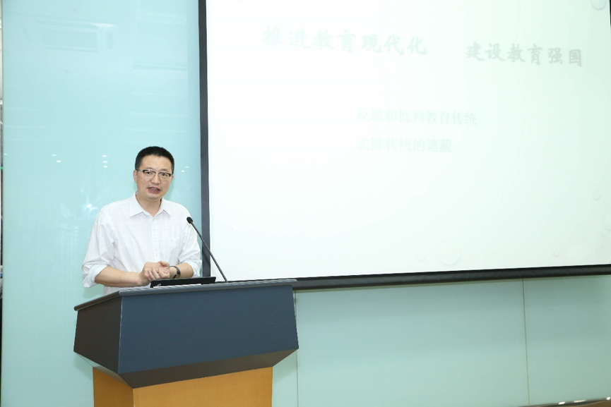 卢晓东教授做了题为“超越因材施教”的主题发言。卢晓东教授从哲学视角对因材施教进行了语义学分析,并对从古至今中西方因材施教观念的发展历程给予个性化阐释。他向与会者接连抛出“教育学在何种意义上不可以成为科学”“一流本科教育一定要把学生推出去吗”等颇具批判性的问题,启发同学们进一步思考教育未来的发展方向,鼓励同学们增强问题意识,把握发展的每一“瞬间”,充分认知和发挥“此在”的动态变化与无限可能。