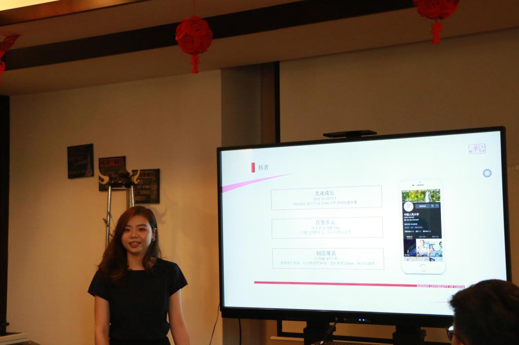 官微官抖新媒体团队首先分享了自己的运营经验,孙浩爽老师从传播环境、时代背景和话语体系等方面分析了官微官抖的发展情况和定位目标,蔡欣欣老师和文莹莹老师从实际案例出发分别为我们介绍了官微和官抖作品的操作过程,分享了她们策划、制作的经验。