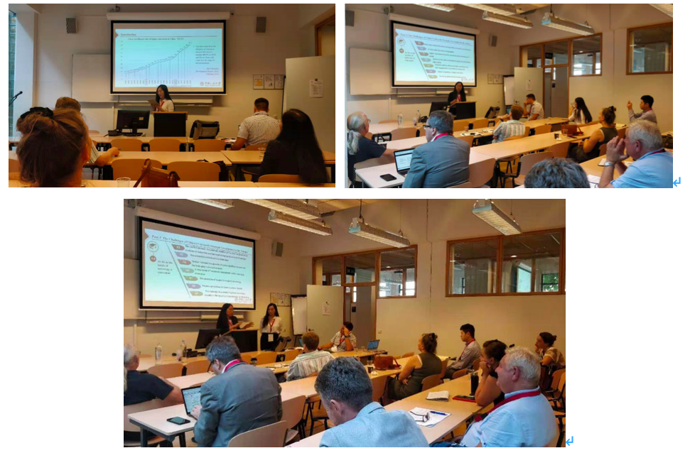 8月26日,在“对未来创新的责任” (Track 10:Responsibility of an Innovative Future)分论坛中,张伟副教授、朱镁铷同学作题为“从精英化到普及化:中国大学战略治理的发展走向”(From Elite to Universal:the Development Trend of Strategic Governance in Chinese Universities)的三十分钟发言。首先朱镁铷同学立足于过去二十年间中国高等教育实现从精英化到大众化、再到普及化的两次重大飞跃,分析讨论了中国大学战略治理从酝酿兴起到发展完善的不同阶段及其呈现的不同特点;随后,张伟副教授检视了普及化时代中国大学战略治理面临的内外部十四项重要挑战。与会外国学者对中国高等教育普及化以后是否仍会保持规模扩张政策表示出浓厚的兴趣,并提出了相关问题,张伟副教授分享了自己的初步看法,并与在场学者就大学治理面临的挑战具有全球共性特点进行了交流、达成了共识。