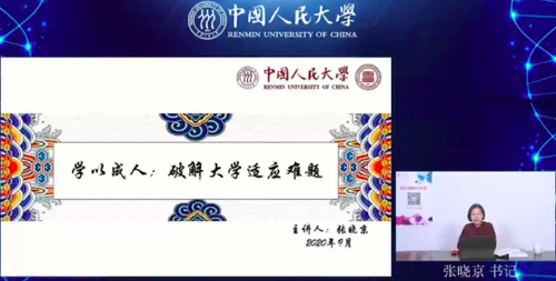 党总支书记兼副院长张晓京受邀主讲新生入学教育报告会,以“学以成人:破解大学适应难题”为主题,系统梳理了新生适应大学生活的表现、问题及解决方案。2020级新生通过线上平台积极参与线上讲座。