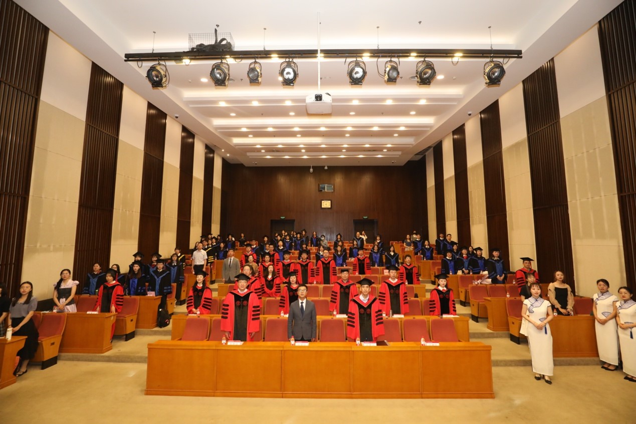雷雳教授共同为硕士学位获得者逐一拨穗、颁授学位证书,并与其合影留念。