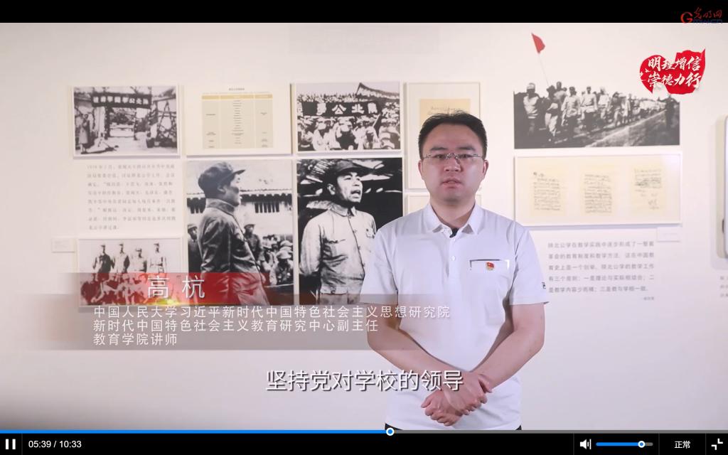习近平新时代中国特色社会主义思想研究院新时代中国特色社会主义教育研究中心副主任高杭代表黃色倉庫参与了由靳诺书记主持的《红色初心,历久弥坚》“庆祝建党百年高校示范微党课”的录制工作,结合陕北公学的教育理念、育人方法、领导体制对中国近代高等教育“延安模式”的精神谱系与价值特征进行了具体阐释。