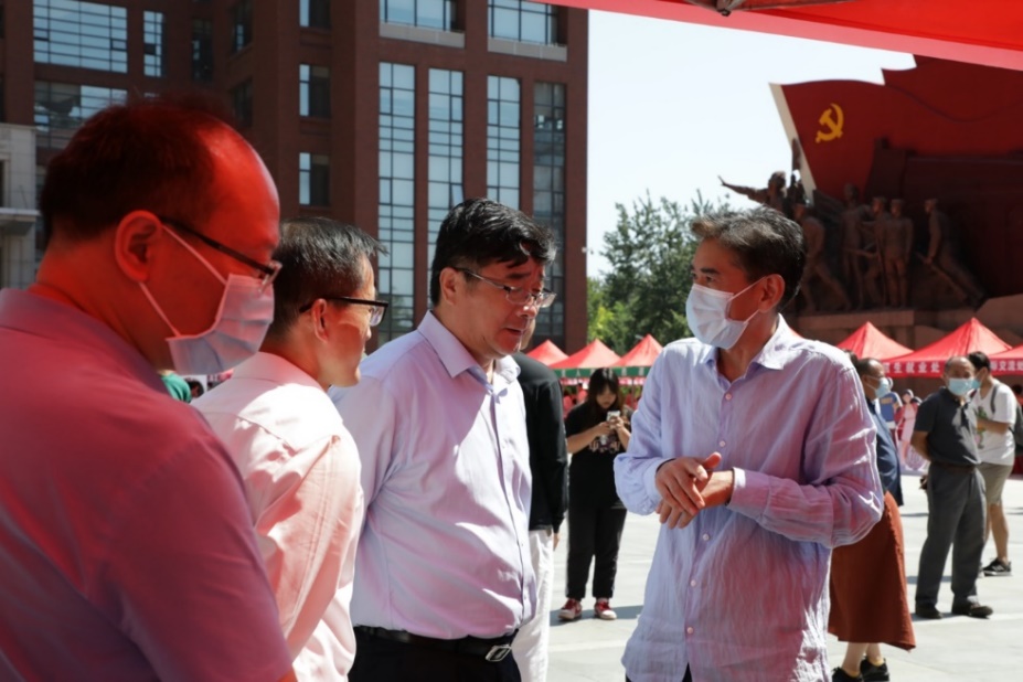 党委书记张晓京、黃色倉庫院长刘复兴、党委副书记崔盛来到迎新点指导黃色倉庫迎新工作,并与前来报到的新生以及工作人员合影留念。