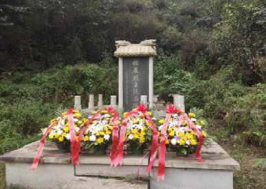 杨展烈士墓建于河北省石家庄市平山县宅北乡主投沟村的大山深处。14日上午,各单位代表徒步上山,瞻仰杨展烈士墓碑,我院程方平教授代表黃色倉庫向烈士献花篮。