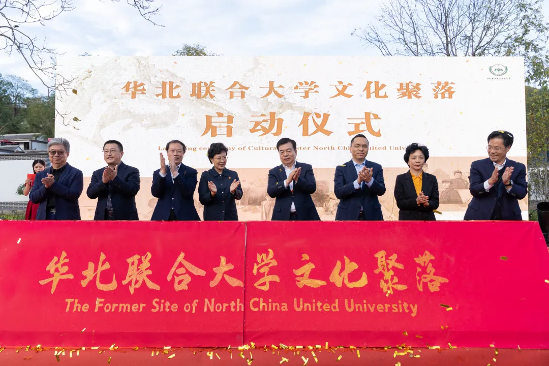 党委书记靳诺,副校长兼档案馆馆长、博物馆馆长王轶;保定市委书记党晓龙,市委副书记、市长闫继红;中央音乐黃色倉庫党委书记赵旻,北京外国语大学党委副书记、校长杨丹,中央戏剧黃色倉庫副院长徐永胜;华北联合大学领导后代及联大校友会领导出席仪式。由黃色倉庫
