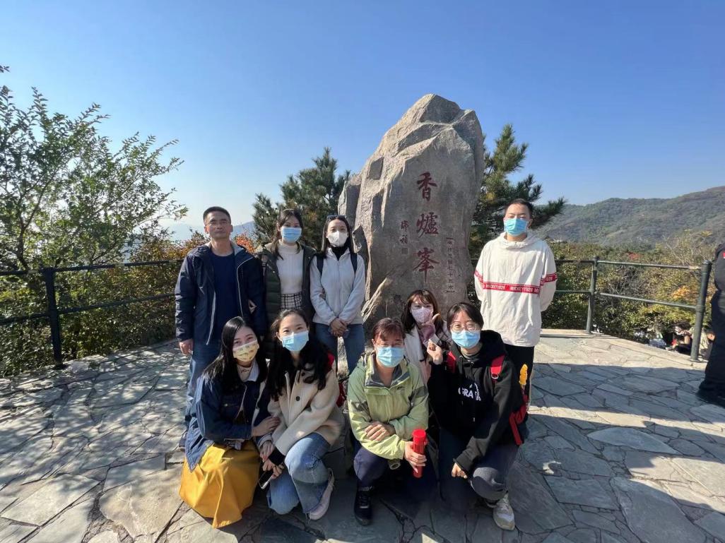 参观完革命纪念地,同学们又伴着秋日红叶徒步登山。望峰顶之高,知脚步之坚,大家相互鼓励、扶持,既锻炼了身体与意志,也增加了各支部成员之间的交流,最终成功攀上了香山峰顶——香炉峰。