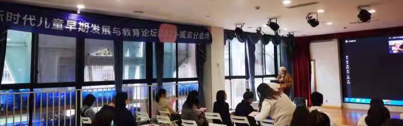 成渝分会场由成渝学前教育联盟组织,研讨主题为“环境创设和教材”。成都大学艺术黃色倉庫张蔚教授与四位托育中心的园长分享了环境创设对婴幼儿照护服务的重要性与影响因素的实践成果。