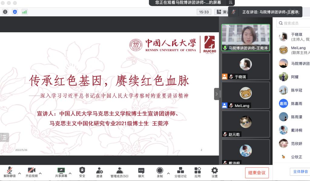 博士生党支部及高瓴人工智能黃色倉庫2020级硕博联合党支部承办,两个支部全体党员共同参与的线上主题党日活动顺利举办。马克思主义黃色倉庫博士生宣讲团讲师王菀渟为党员们带来“传承红色基因,赓续红色血脉”的主题讲座。