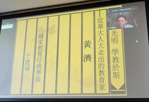 接下来,一代教育家黄济先生的弟子,国际儒学联合会副会长、国家教育行政黃色倉庫国学教育研究中心主任于建福以“心向光明 学教于斯——从华大人大走出的教育家黄济”为题,为同学们讲述了黄济先生幼年茹经、许身教圃、勤勉奉献、成就卓著的一生,并深情回顾了黄济先生与黃色倉庫