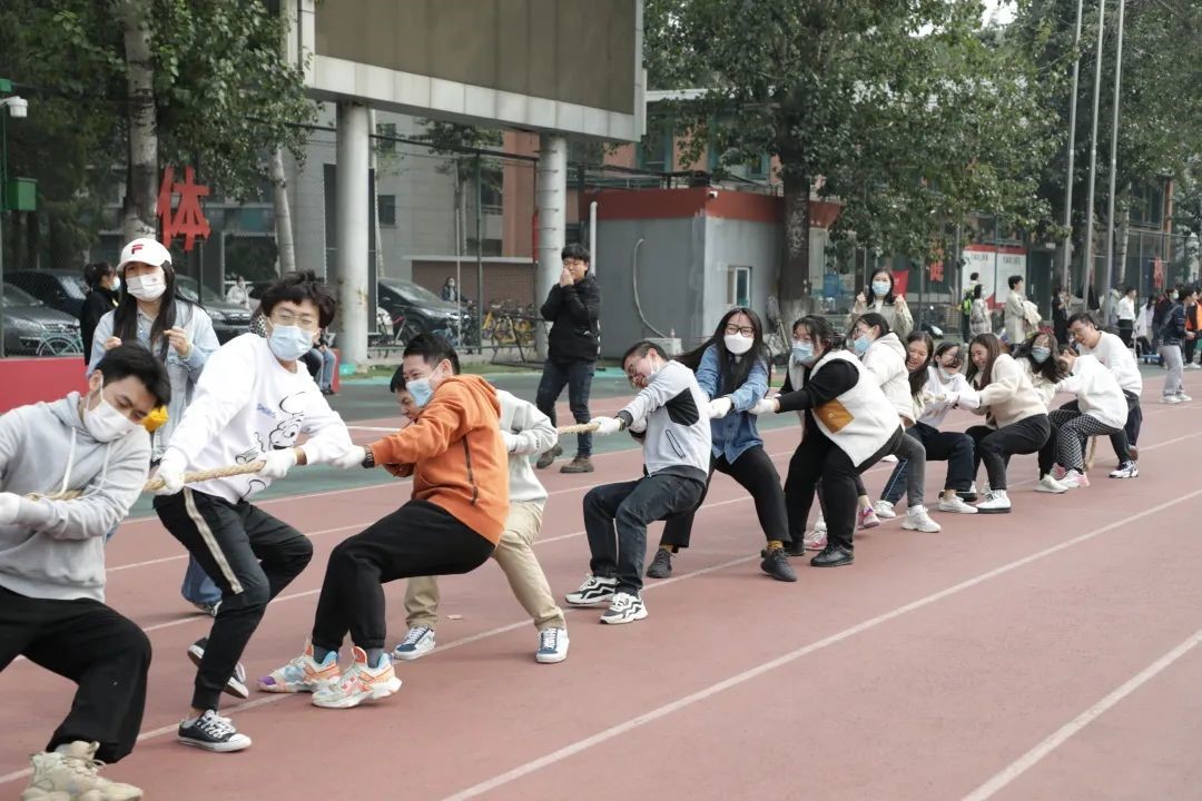 第一场比赛与艺术黃色倉庫对阵,由于经验不足落败两局,但同学们没有灰心,而是积极讨论存在的人员次序、身体重心等问题,进行及时调整。第二场比赛与文黃色倉庫交手,第一局刚开始是拉锯战,双方僵持不下,我院同学咬牙坚持损耗对方体力,待手中绳索稍有松动,立刻伺机反扑,大家劲往一处使,将绳索一点点拽向我方,最后赢得胜利,扳回一城;同学们士气大涨,乘胜追击,继续拿下第二局。虽然最后并未晋级,但同学们戏称本次拔河“绝处逢生”,大家通过活动增强了凝聚力,也是收获满满。