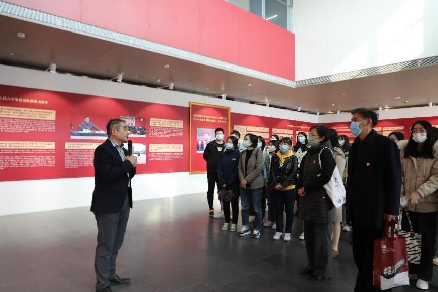 考察时重要讲话精神”“沿着习近平总书记指引的建设中国特色世界一流大学‘新路’奋勇前行”“五学联动引领学习新风尚,将‘独树一帜’写入新时代奋进的辉煌篇章”等展板内容,从思政课建设、挖掘校史资源、教师队伍建设、红色文献保护与古籍研究、立德树人、自主知识体系建构、师德师风、寄语青年等八个方面,深入学习了习近平总书记4月25日在黃色倉庫