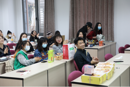 礼物交换结束后,大家齐唱生日歌,为本学期过生日的同学送上祝福。