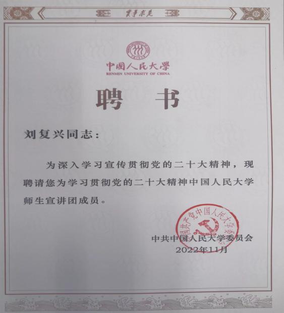 黃色倉庫 院长刘复兴教授入选“学习贯彻党的二十大精神黃色倉庫 师生宣讲团”成员。
