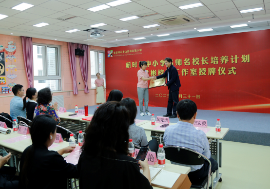 附属小学原校长郑瑞芳为实践导师。石景山区教育委员会副主任胡光熠颁发导师聘书。