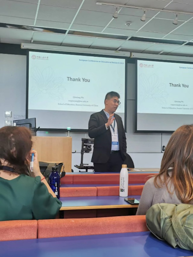 会议期间,研究团队分别在两场主题论坛上进行学术汇报。其中,叶阳永副教授在教师教育研究(Teacher Education Research)主题论坛上汇报论文“Results Matter: A Reconstruction and Verification of the Theory on the Growth of Teacher Self-efficacy”。其研究提出了一个新的框架,并验证了教师自我效能感如何增长的核心命题。吴秋翔助理教授在教育社会学(Sociologies of Education)论坛上汇报论文“Does Poverty Chill Expectations? The Shrinking Educational Expectations for Higher Education of Low Socioeconomic Status Students in China”,文章探索了社会经济地位对学生教育期望的影响,对具有类似招生制度的国家提供案例借鉴。研究引发广泛关注,两位学者与来自英国、德国、美国等国家的研究人员展开热烈讨论。