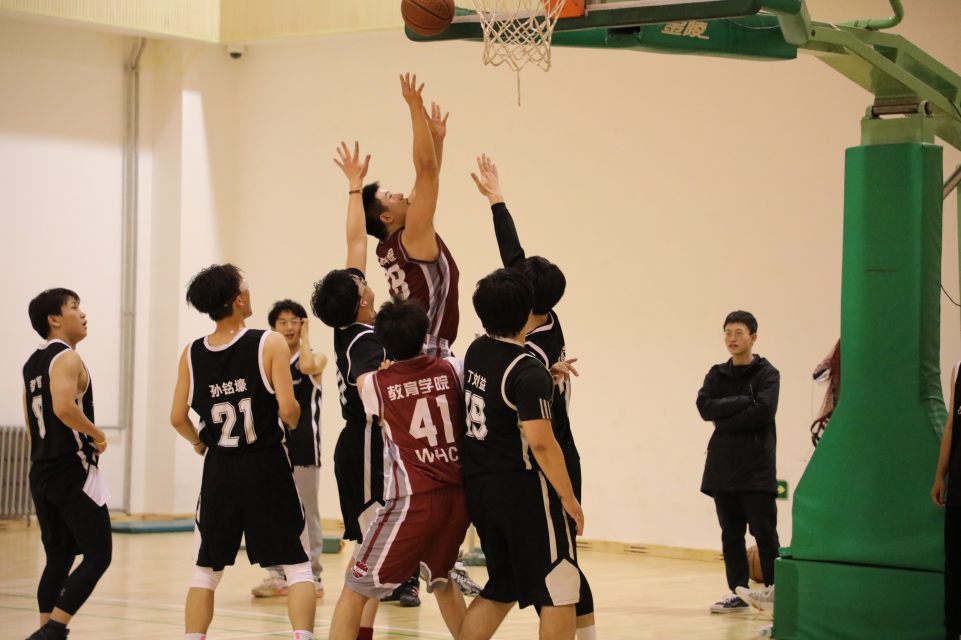男子篮球队全队团结一致、顽强拼搏,展现出教院学子自强不息、追求卓越的精神风貌。