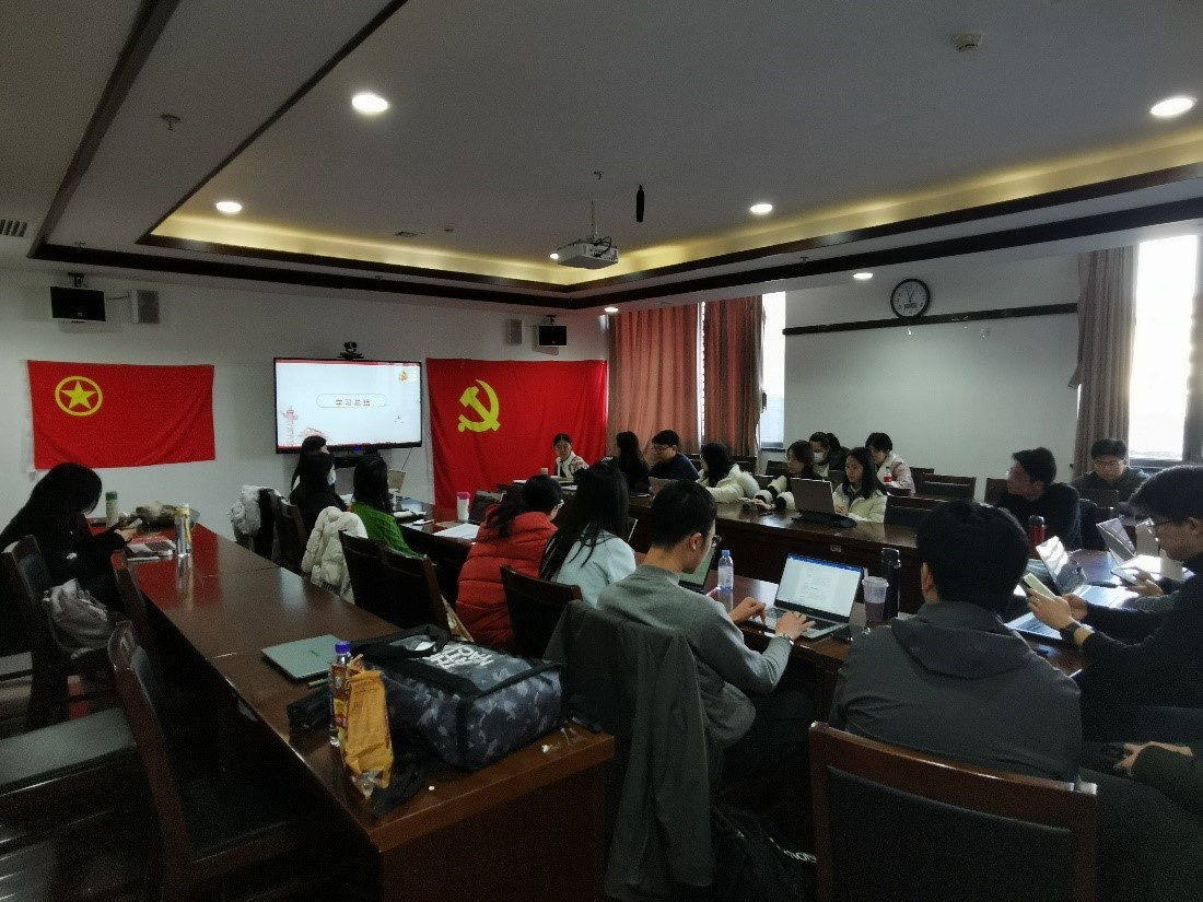 2023级硕士生党支部和团支部联合开展“学习全国两会精神”主题党日、主题团日活动。活动由团支部书记李杭璋主持,团委书记孙铭参与活动并进行指导。