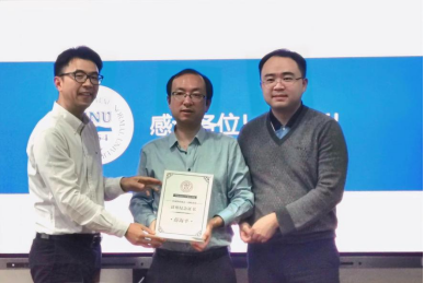 讲座结束后,高杭老师与崔盛老师为薛海平老师颁发讲座纪念证书,并进行合影留念。