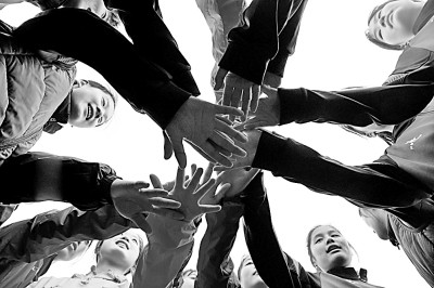 安徽省淮南市第二中学女子足球队球员在对抗赛前击掌加油。陈彬摄/光明图片