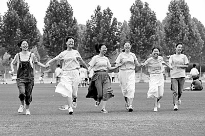 2021年6月9日,河南省温县一中高三毕业生在校园内拍摄个性毕业照。徐宏星摄/光明图片