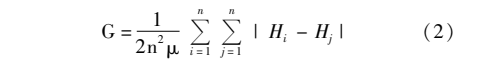 其二,空间测度的区位基尼系数。区位基尼系数是衡量经济空间差异或产业空间集聚程度的重要方法之一。研究使用区位基尼系数测量高等教育资源的地理集中程度。区位基尼系数越大,高等教育资源地理集中度越高,计算方法如式(2)所示。其中,Hi和Hj分别表示城市群中城市i和城市j的高等教育资源。μ为城市群内各城市高等教育资源的均值,n为城市群内的城市数。