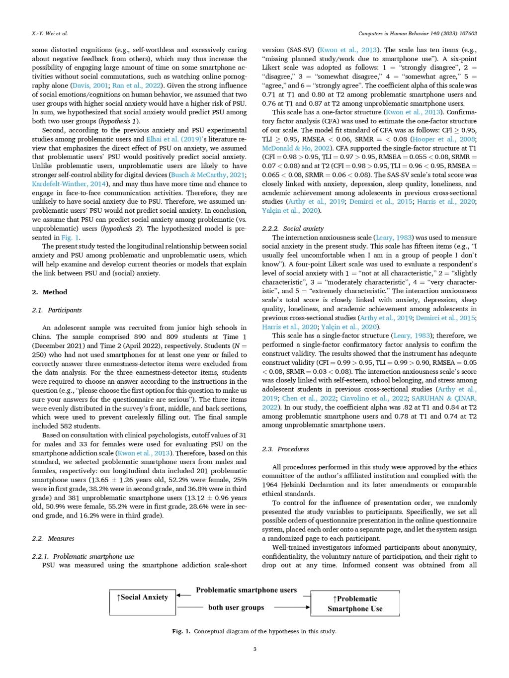 Keywords:Adolescents; Problematic smartphone use; Social anxiety; Factor score path analysis