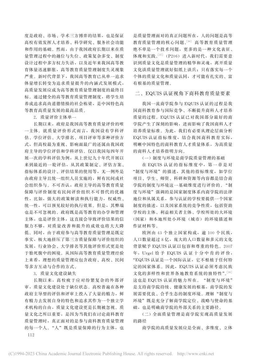 关键词:EQUIS认证;商科教育;质量管理;中国特色商科教育质量管理体系